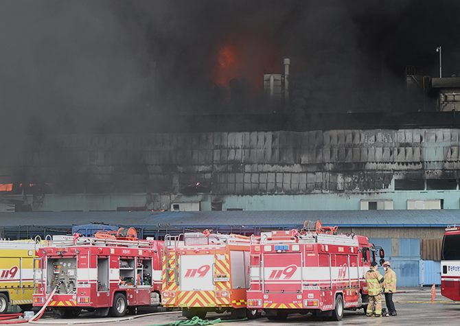 서쪽 공장과 물리적 간격을 두고 떨어진 남쪽 공장으로는 다행히 불길이 번지지 않고 있다.