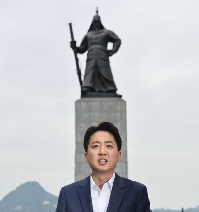 이 후보는 이날 서울 광화문광장 이순신 장군 동상 앞에서 기자회견을 열고 “이준석이 충무공의 기개로 맨 앞에서 싸우겠다”며 이 같이 말했다.