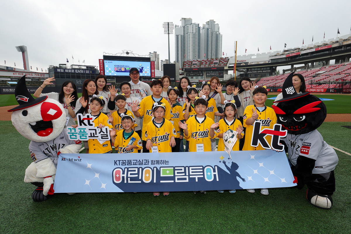 KT가 가정의 달을 맞아 지난 16일 KT꿈품교실의 난청아동들과 가족들을 수원 KT위즈파크로 초청해 ‘어린이 드림투어’ 행사를 진행했다고 19일 밝혔다.
