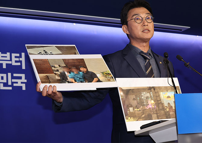 더불어민주당은 19일 윤석열 전 대통령의 내란 우두머리 혐의 재판을 담당하고 있는 지귀연 서울중앙지법 부장판사의 룸살롱 접대 의혹과 관련한 사진을 공개했다.