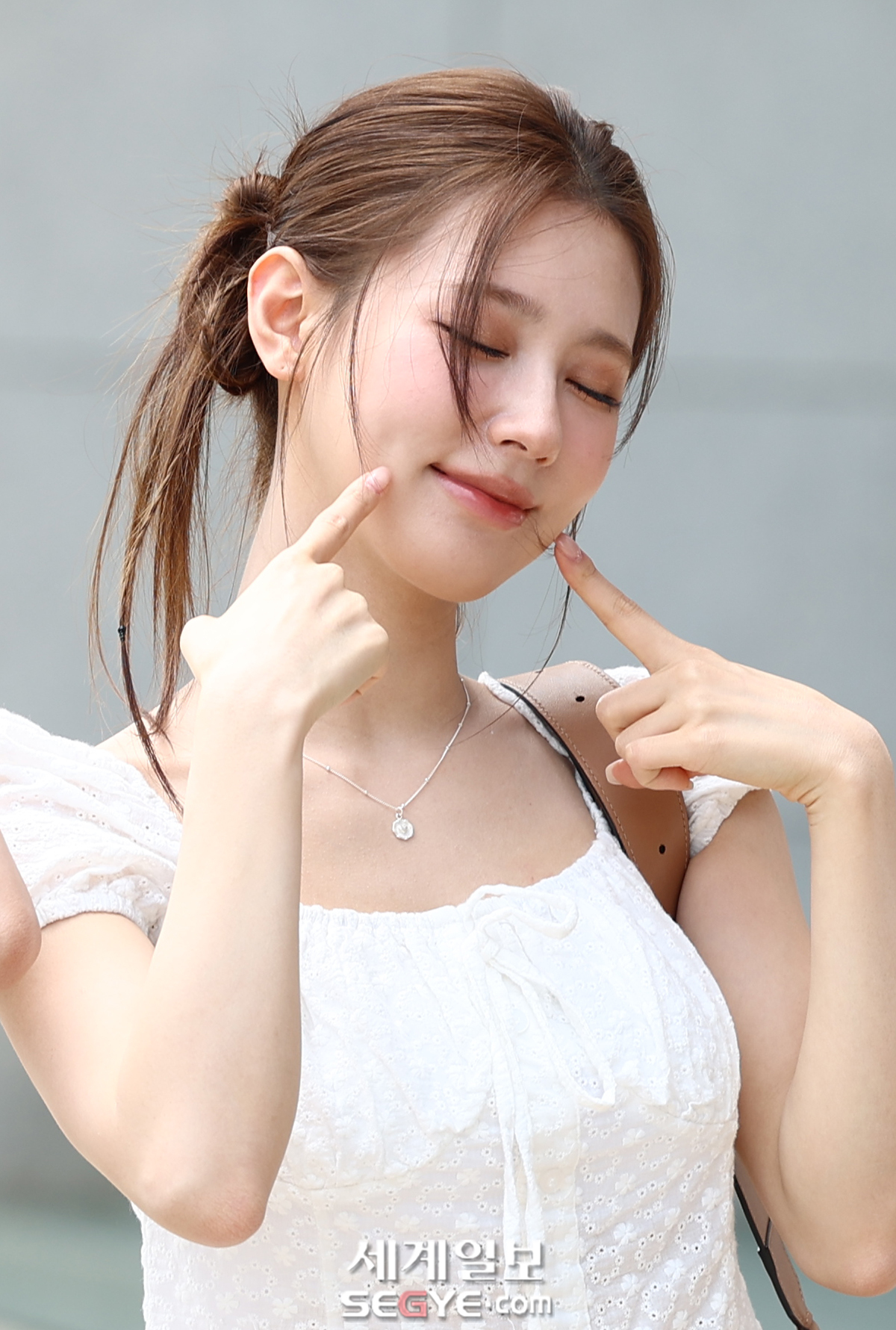 그룹 아이들 미연이 20일 오후 서울 여의도 KBS에서 열린 라디오 ‘이은지의 가요광장’ 출근길에 참석해 포즈를 취하고 있다.