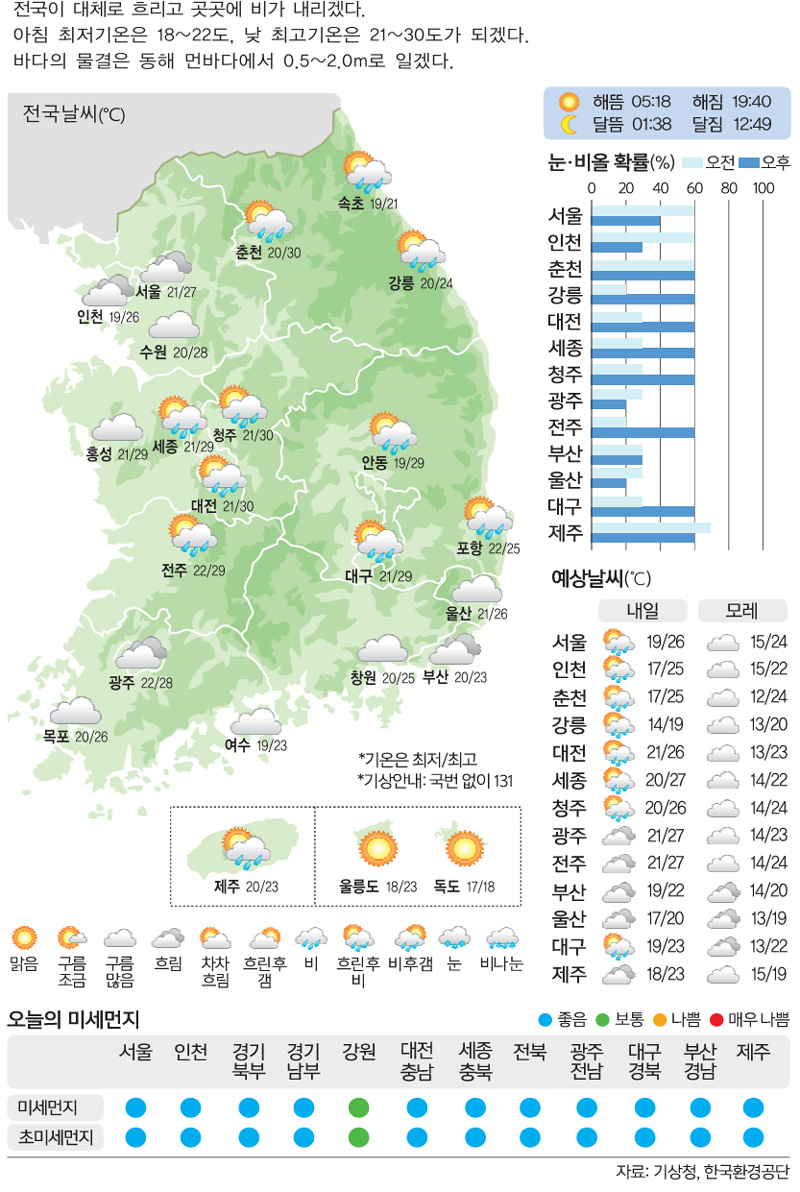 [21일의 날씨] 여름 문턱 '소만' …곳곳 비소식 입력 : 2025-05-20 18:29:52 수정 : 2025-05-20 21:34:53 구글 네이버 유튜브 Copyright ⓒ 세계일보. 무단 전재 및 재배포 금지 세계일보