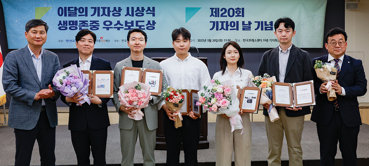 20일 서울 중구 세종대로 한국프레스센터에서 열린 제416회 이달의기자상 시상식에서 ‘당신도 음모론에 빠질 수 있다’ 보도로 신문·통신 부문상을 수상한 세계일보 사회부의 안승진(왼쪽 두 번째부터)·장한서·윤준호·이예림·권구성 기자가 박희준 편집국장(〃 첫 번째), 박종현 한국기자협회장(〃 일곱 번째)과 함께 기념 촬영을 하고 있다.