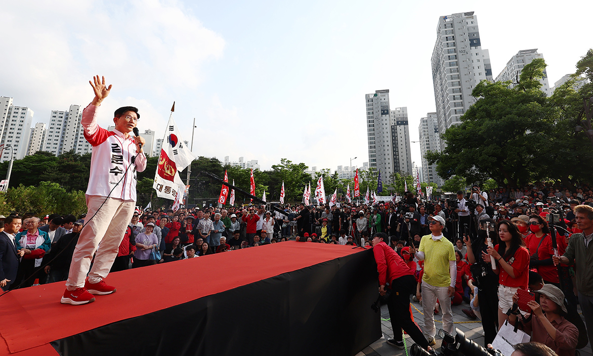 김 후보는 전날 더불어민주당 이재명 후보의 '방탄유리' 유세를 비판하며 "저는 방탄조끼를 입을 필요가 없다. 경찰 경호도 필요 없다. 제가 총 맞을 일이 있다면 맞겠다"고 언급한 바 있다.