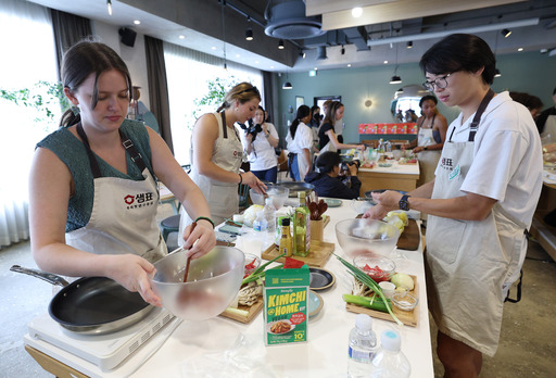 한식 만들기 체험하는 외국인 학생들 입력 : 2025-05-22 23:14:00 수정 : 2025-05-22 22:52:45 남정탁 기자 구글 네이버 유튜브 22일 서울 중구 샘표 우리맛공간에서 열린 한식 쿠킹클래스에서 한국의 식문화를 배우기 위해 방한한 미국 조지아대 학생들이 겉절이를 만들고 있다. 남정탁 기자 Copyright ⓒ 세계일보. 무단 전재 및 재배포 금지 세계일보 남정탁