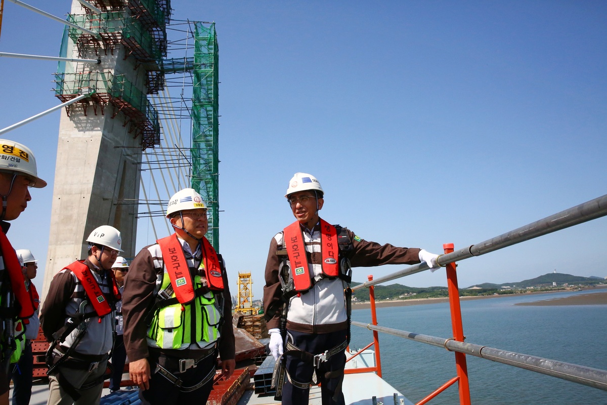 김승모 대표이사는 현장을 점검하면서 안전에 대한 적극적인 관심과 자발적인 참여를 독려했다. 김승모 대표이사는 “근로자의 생명과 안전을 최우선으로 삼고 현장 구성원들이 추락사고 방지 등 안전관리에 주의를 기울여달라”고 말했다.