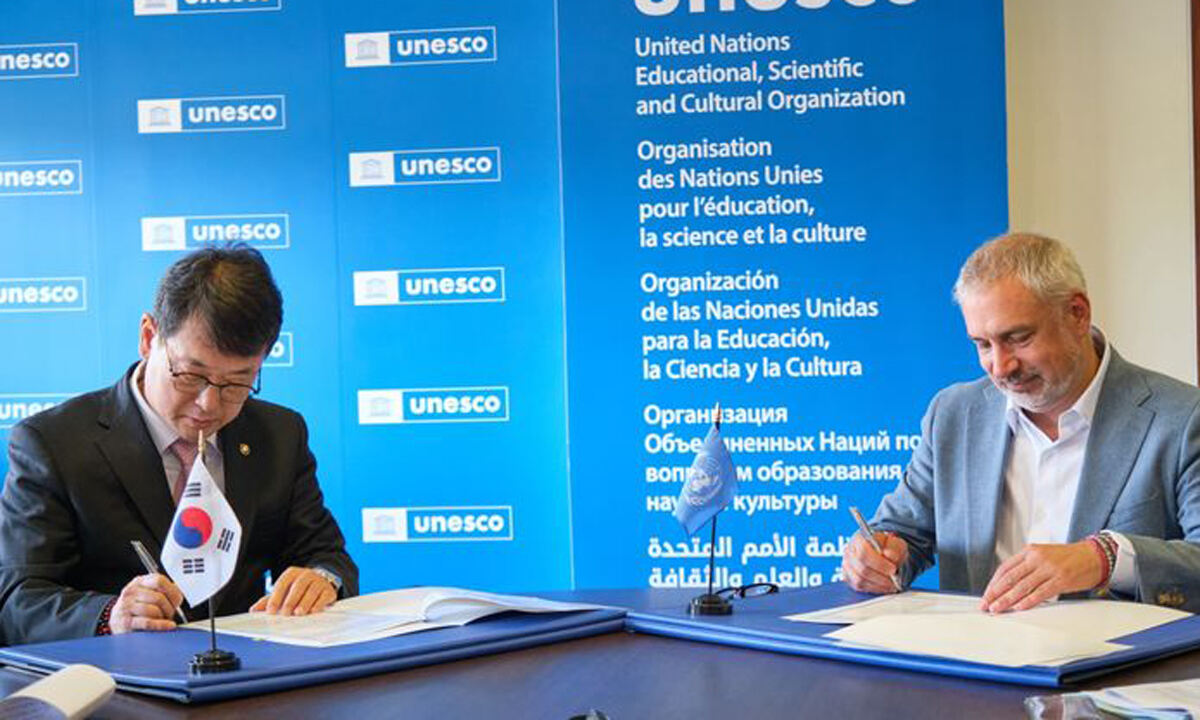 국가유산청은 23일 (현지시간) 프랑스 파리의 유네스코 본부에서 무형유산보호협약 신탁기금 공여를 위한 협정을 체결했다고 밝혔다. 이번 협정에 따라 국가유산청과 유네스코는 무형유산 보호·전승에 앞장서는 모범 사례를 공유하는 온라인 플랫폼을 구축하는 데 협력한다.