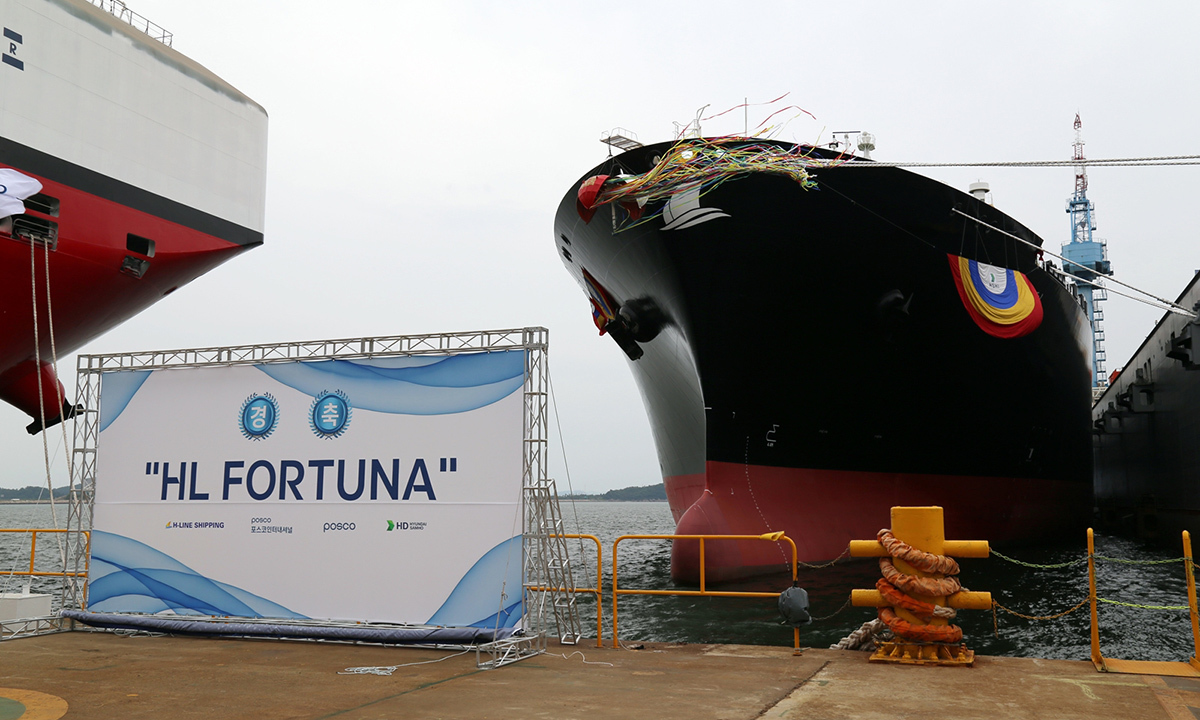 포스코인터내셔널은 지난 23일 전남 목포 HD현대삼호에서 그룹 최초의 자체 LNG 전용선인 ‘HL 포르투나(FORTUNA)호’(사진) 명명식을 개최했다고 25일 밝혔다. 포르투나는 라틴어로 ‘행운’을 뜻한다. HL 포르투나호는 북미산 LNG 운송에 최적화된 사양을 갖췄다. 전장 299m, 폭 46.4m, 적재용량 17만4000㎥급으로 한 번에 약 7만8000t 이상의 천연가스를 실어 나를 수 있다. 7만8000t은 우리나라 전체가 12시간 동안 사용할 수 있는 양이다. 전용선은 LNG를 주 연료로 사용하는 이중 연료 시스템, 운송 중 증발된 가스를 다시 냉각해 연료로 복원하는 고효율 재액화 설비 등을 갖춰 국제 환경규제에도 유연하게 대응하게끔 설계됐다.