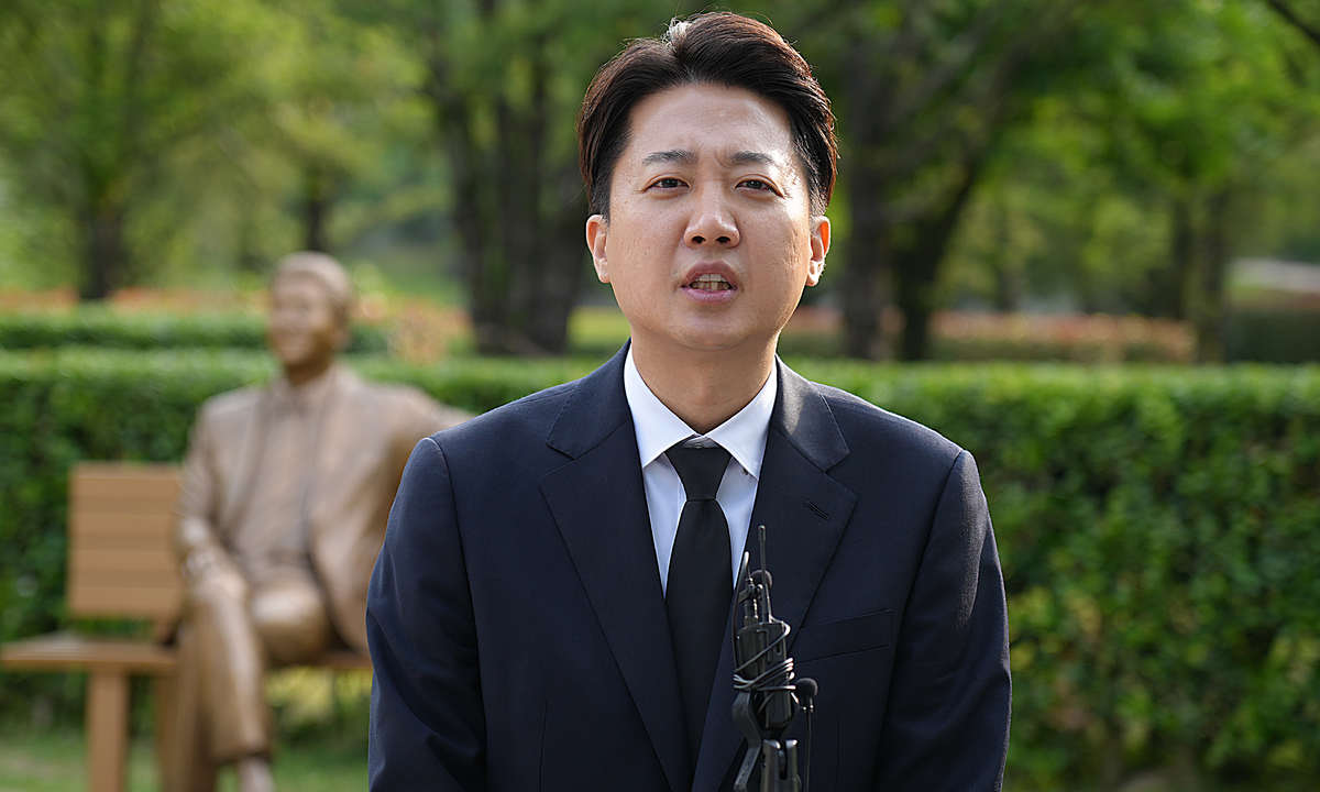 개혁신당 이준석 대선 후보가 23일 경남 김해시 진영읍 봉하마을을 방문, 노무현 전 대통령 묘역을 참배한 뒤 발언하고 있다. 개혁신당 제공