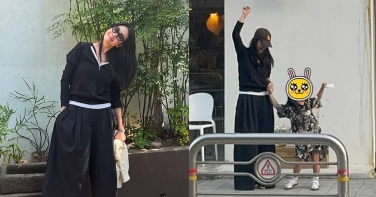 또다른 사진 속 최지우는 거리에서 딸 이루아 양과 손잡고 있는 모습이다.