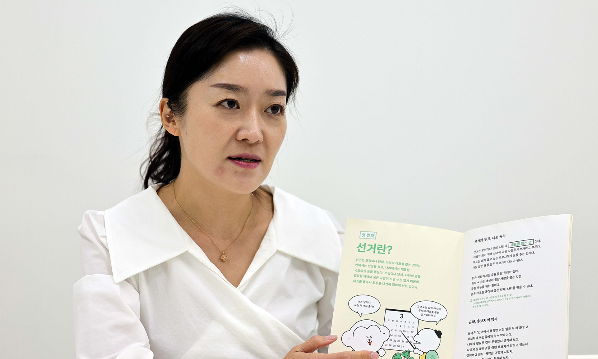 세계일보는 지난 3월27일 서울 금천구에 있는 소소한소통 사무실에서 백 대표를 만났다. 그는 “어떤 일이든 결정할 때는 정보가 필요하다. 자기결정권을 누리기 위한 기본 수단이 정보”라며 “나를 둘러싼 수많은 정보를 이해하고 선별하고 결정할 수 있어야 한다”고 설명했다. 마주앉은 책상 위엔 지난해 국회의원선거 때 만든 만화책 ‘선거를 부탁해’가 놓여있었다. 책을 열어보면 귀여운 인물이 등장해 짧은 문장과 쉬운 단어로 선거 설명과 투표 방법을 설명한다.