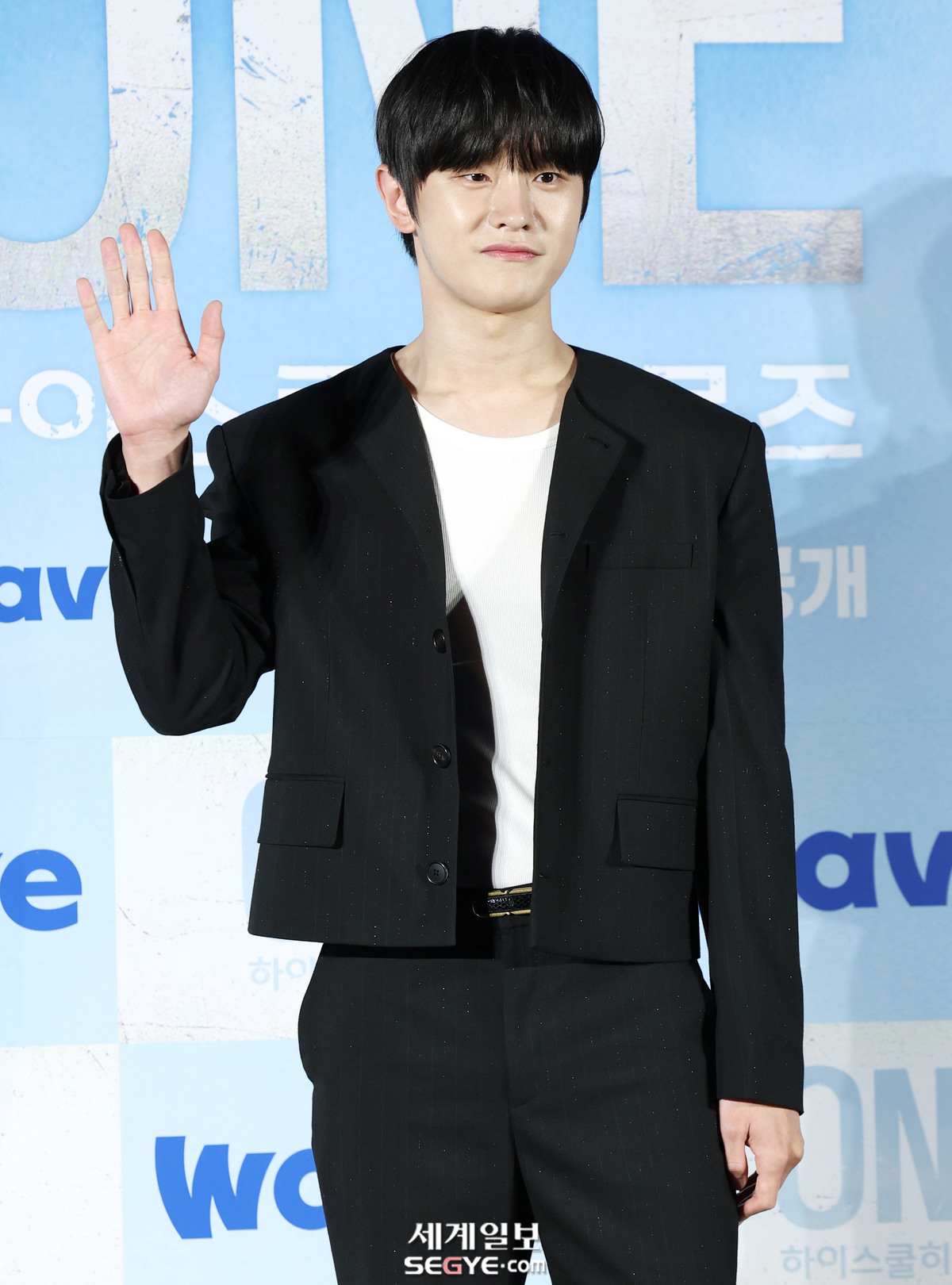 배우 김도완이 28일 서울 광진구 건대입구 롯데시네마에서 열린 새 드라마 'ONE : 하이스쿨 히어로즈' 제작발표회에 참석해 포즈를 취하고 있다.