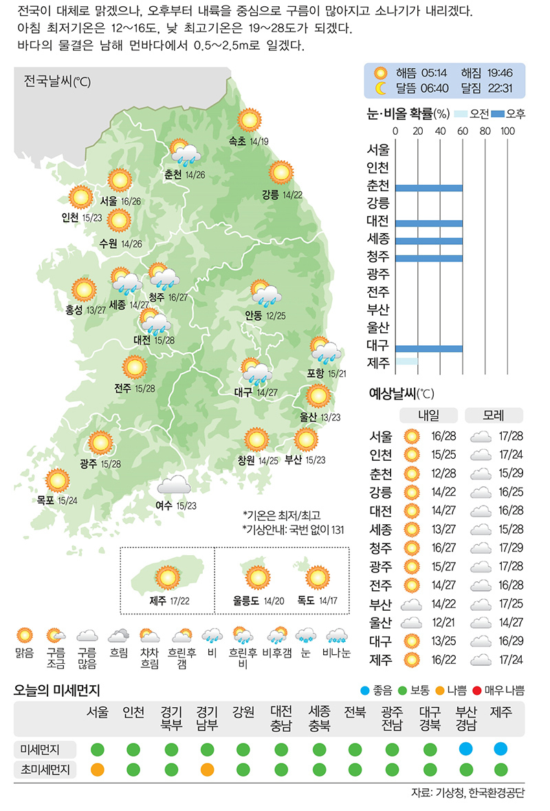 [29일의 날씨] 곳곳 소나기… 우산 챙기세요 입력 : 2025-05-28 18:18:09 수정 : 2025-05-28 21:59:35 구글 네이버 유튜브 Copyright ⓒ 세계일보. 무단 전재 및 재배포 금지 세계일보