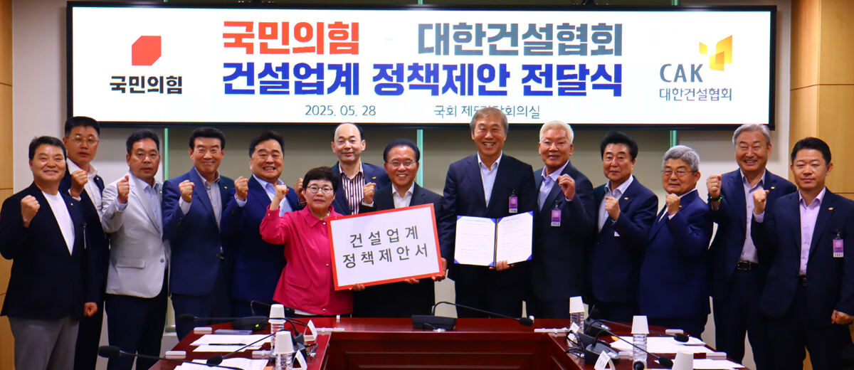 대한건설협회는 국민의힘 임이자·윤재옥 의원과 함께 차기 정부에 바라는 건설정책 과제를 담은 ‘정책제안 전달식’을 28일 개최했다고 밝혔다.