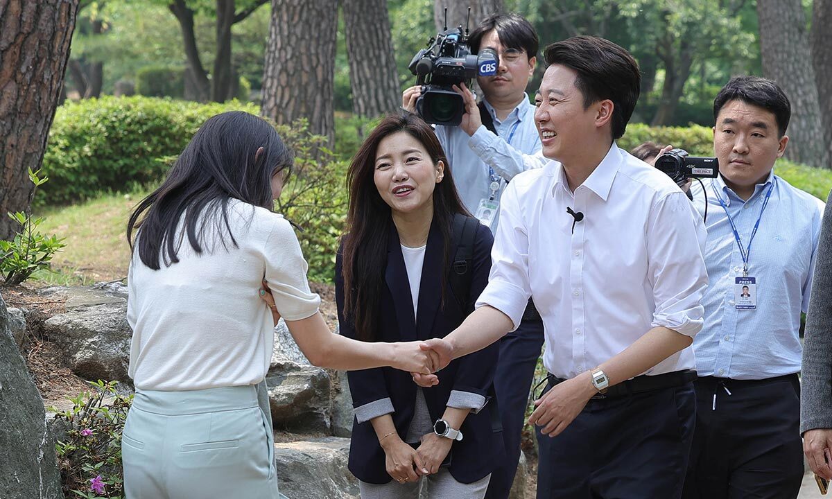 “순화해서 표현한 건데… 불편한 국민들에 사과” 입력 : 2025-05-28 23:12:00 수정 : 2025-05-28 18:12:28 이재문 기자 구글 네이버 유튜브 개혁신당 이준석 대선 후보(앞줄 오른쪽)가 28일 서울 영등포 여의도공원에서 산책 나온 직장인과 악수하며 지지를 호소하고 있다. 이재문 기자 Copyright ⓒ 세계일보. 무단 전재 및 재배포 금지 세계일보 이재문
