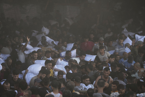AP통신에 따르면 이날 유엔 세계식량계획(WFP) 창고 앞에는 수백 명의 팔레스타인인들이 몰려 들어 서로를 밀치고 소리 치며 건물 일부를 뜯어내며 안으로 들어갔다.