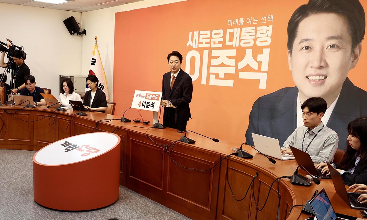 이준석 개혁신당 대통령 후보가 29일 서울 여의도 국회에서 긴급 기자회견을 하고 있다.