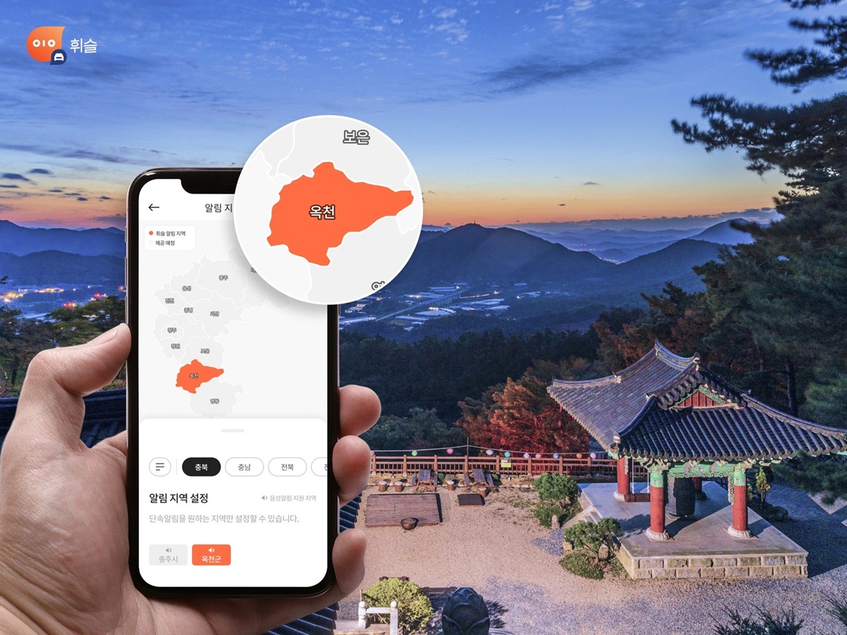 휘슬은 옥천군을 포함해 충주시, 천안시, 공주시 등 전국 시군구 지역에서 통합 주정차 단속 알림 서비스를 제공 중이다. 운전자에게 간단한 앱 설치로 실시간 주정차 단속 정보를 안내해 관광지 주변의 불편한 교통 상황을 줄이고 쾌적한 여행 환경을 조성하고 있다.