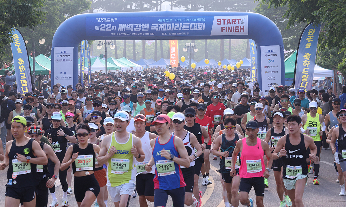 국내외 러너들 힘찬 출발 입력 : 2025-06-02 02:28:15 수정 : 2025-06-02 02:28:14 남정탁 기자 구글 네이버 유튜브 1일 서울 마포구 평화의공원 평화광장에서 세계일보와 한국마라톤협회가 공동주최한 ‘희망드림’ 제22회 새벽강변 국제마라톤대회에서 참가자들이 힘찬 발걸음으로 출발하고 있다. 남정탁 기자 Copyright ⓒ 세계일보. 무단 전재 및 재배포 금지 세계일보 남정탁
