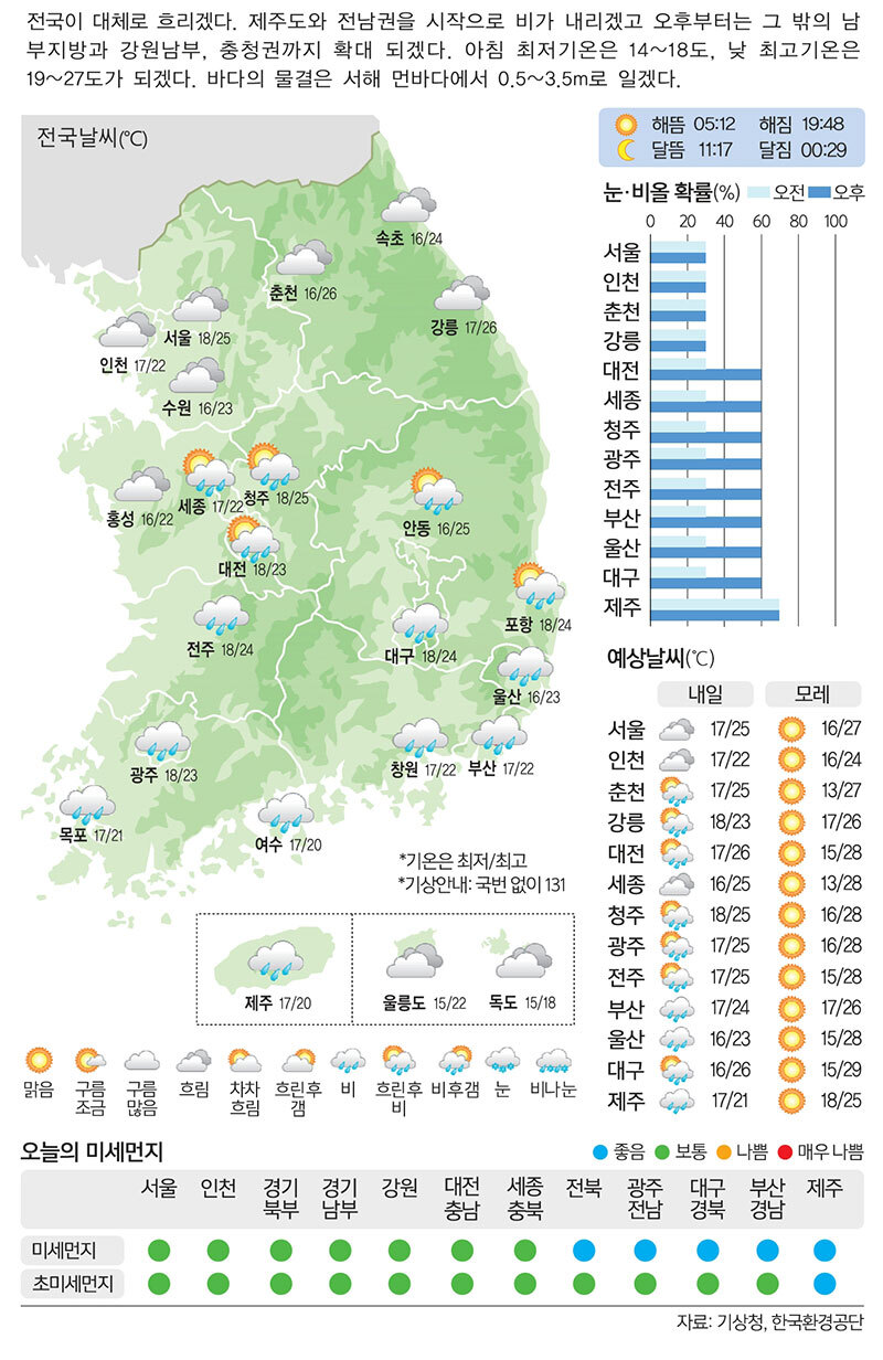 [2일의 날씨] 이른 더위 식힐 비 입력 : 2025-06-01 18:17:23 수정 : 2025-06-01 22:09:55 구글 네이버 유튜브 Copyright ⓒ 세계일보. 무단 전재 및 재배포 금지 세계일보