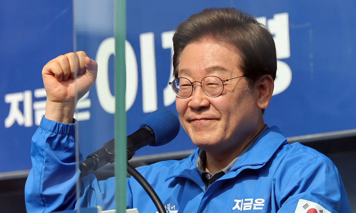 더불어민주당 이재명 대선 후보가 막바지 ''험지 공략''에 나선 1일 울산광역시 일산해수욕장 앞에서 시민들에게 지지를 호소하고 있다. 공동취재