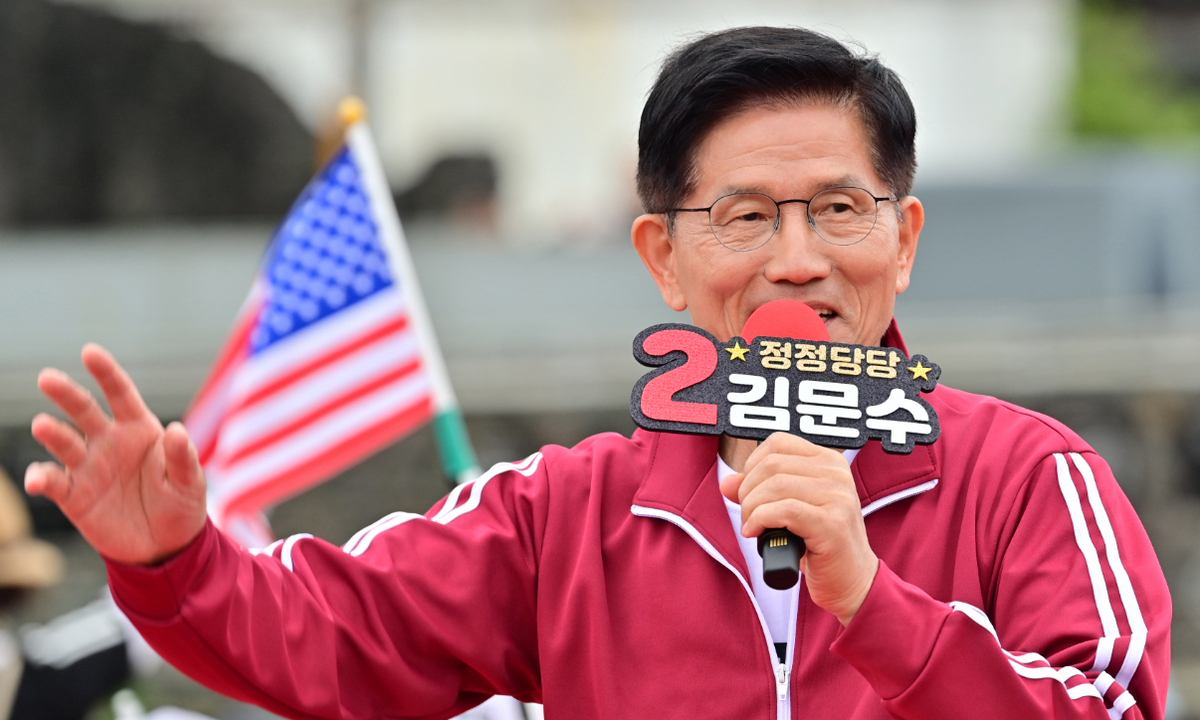 국민의힘 김문수 대선 후보가 2일 오전 제주시 동문로터리에서 유세를 하고 있다. 제주도사진기자회