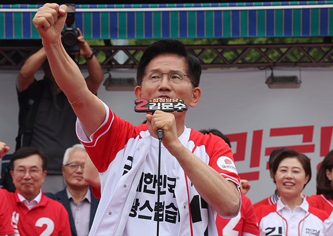 김 후보는 특히 더불어민주당 이재명 후보를 겨냥, "국민들께서 계엄으로 힘든 시간을 보내실 때 국회 독재를 일삼고 사법 리스크에 떨고 있던 이 후보는 감옥에 갈 처지에서 기사회생해 이제는 모든 권력을 장악하며 히틀러식 총통 독재를 펼치려 한다"고 지적했다.