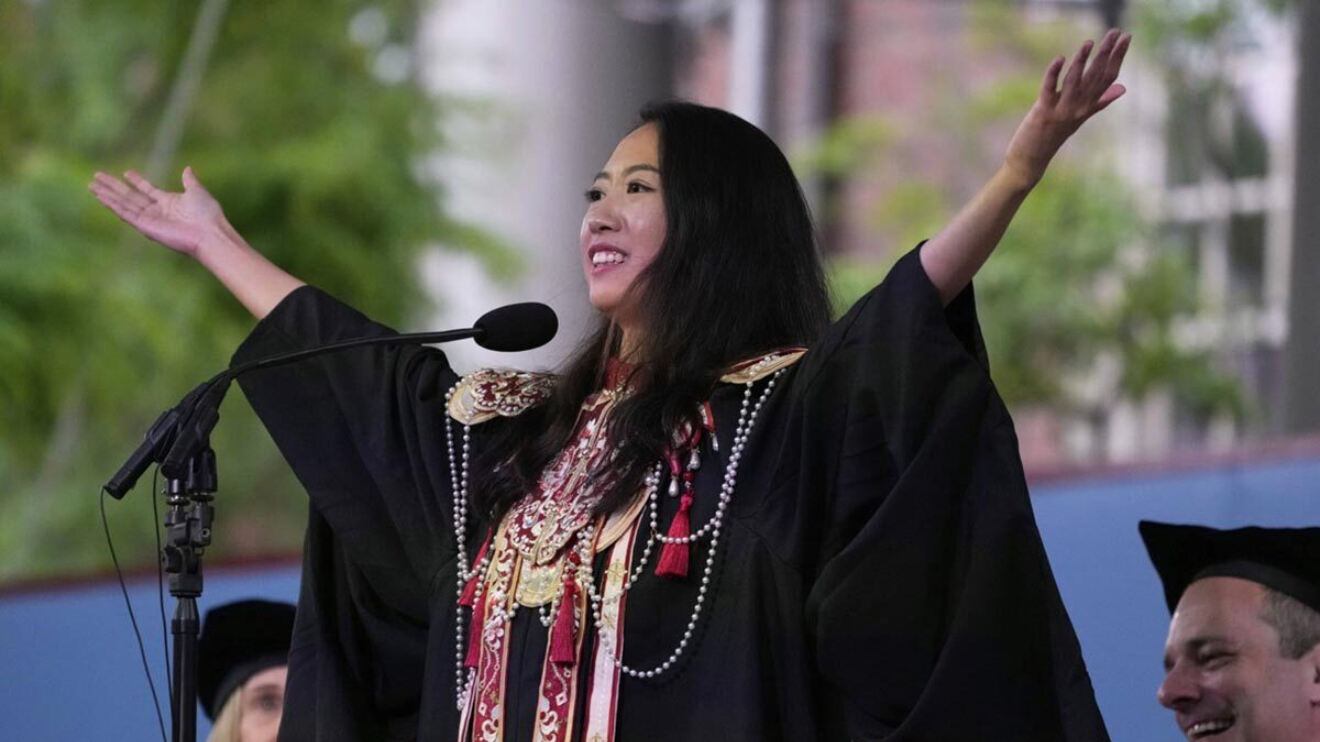 그는 하버드대 약 400년 역사에서 졸업 연설을 한 첫 번째 중국 여성이었고, 중국인으로서는 두 번째였다.