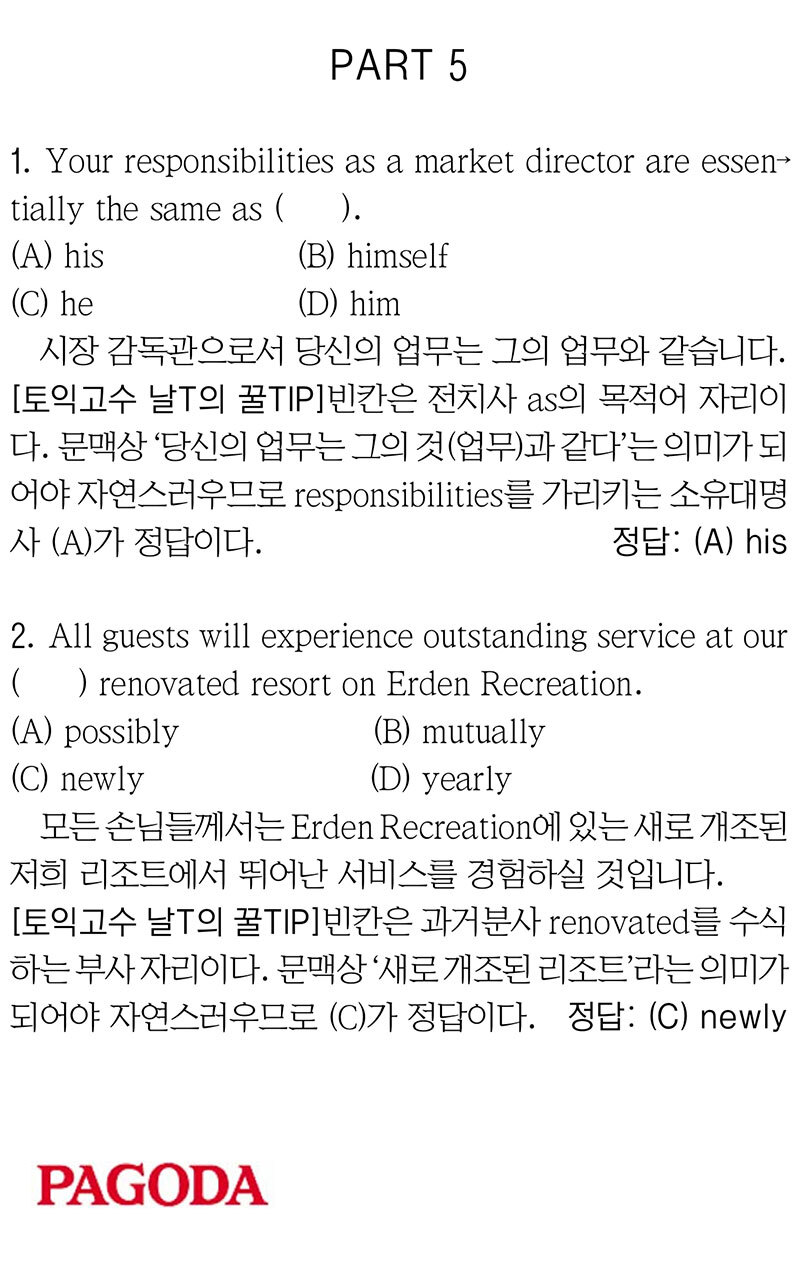 [파고다 강남 끝토익 RC김나래] PART 5 입력 : 2025-06-03 18:14:06 수정 : 2025-06-03 18:14:05 구글 네이버 유튜브 Copyright ⓒ 세계일보. 무단 전재 및 재배포 금지 세계일보