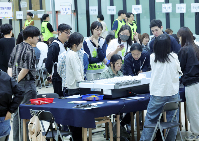 [속보] 10% 개표…이재명 45.87%·김문수 45.95%·이준석 7.14% 입력 : 2025-06-03 22:23:14 수정 : 2025-06-03 22:23:20 구글 네이버 유튜브 참관인 지켜보는 가운데 투표지 분류작업 (고양=연합뉴스) 김병만 기자 = 제21대 대통령 선거일인 3일 밤 경기도 고양시 일산동구 고양국제꽃박람회 전시관에 마련된 개표소에서 참관인들이 지켜보는 가운데 개표 사무원들이 투표지 분류작업을 하고 있다. 2025.6.3 kimb01@yna.co.kr/2025-06-03 22:19:21/ <저작권자 ⓒ 1980-2025 ㈜연합뉴스. 무단 전재 재배포 금지, AI 학습 및 활용 금지> 10% 개표…이재명 45.87%·김문수 45.95%·이준석 7.14% <연합>연합> Copyright ⓒ 세계일보. 무단 전재 및 재배포 금지 연합 류미나