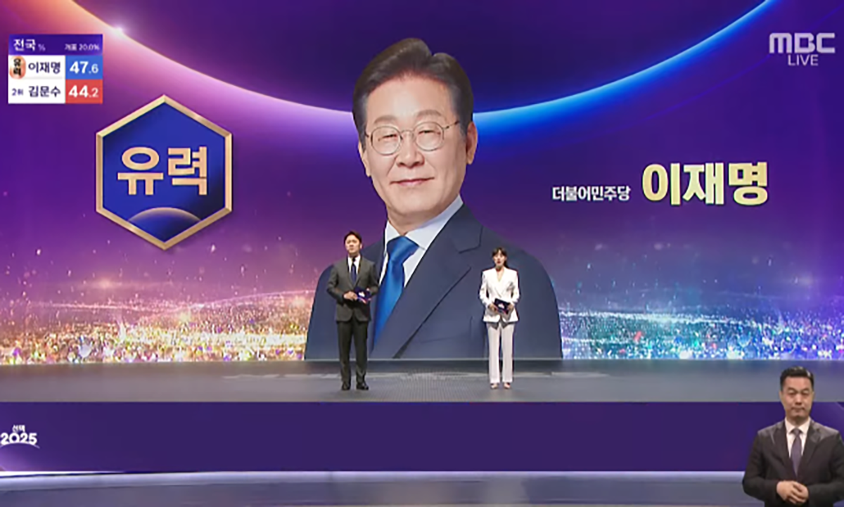 지상파(KBS·MBC·SBS) 방송 3사는 3일 이재명 더불어민주당 대선후보의 대통령 당선 ‘유력’을 예측했다.