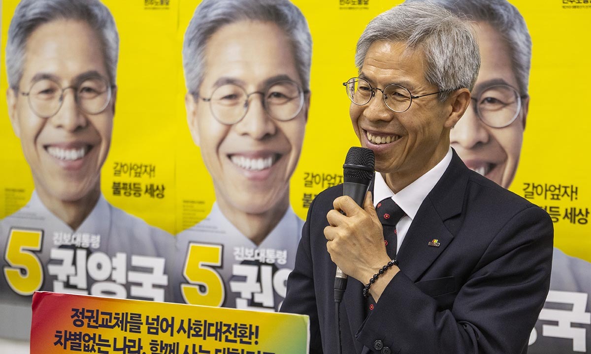 제21대 대통령 선거에 도전했던 민주노동당 권영국 전 후보는 4일 "다시 민주노동당 대표, 거리의 정치인으로 돌아가 진보 정치가 있어야 할 곳에서 마지막까지 함께 하겠다"고 말했다.