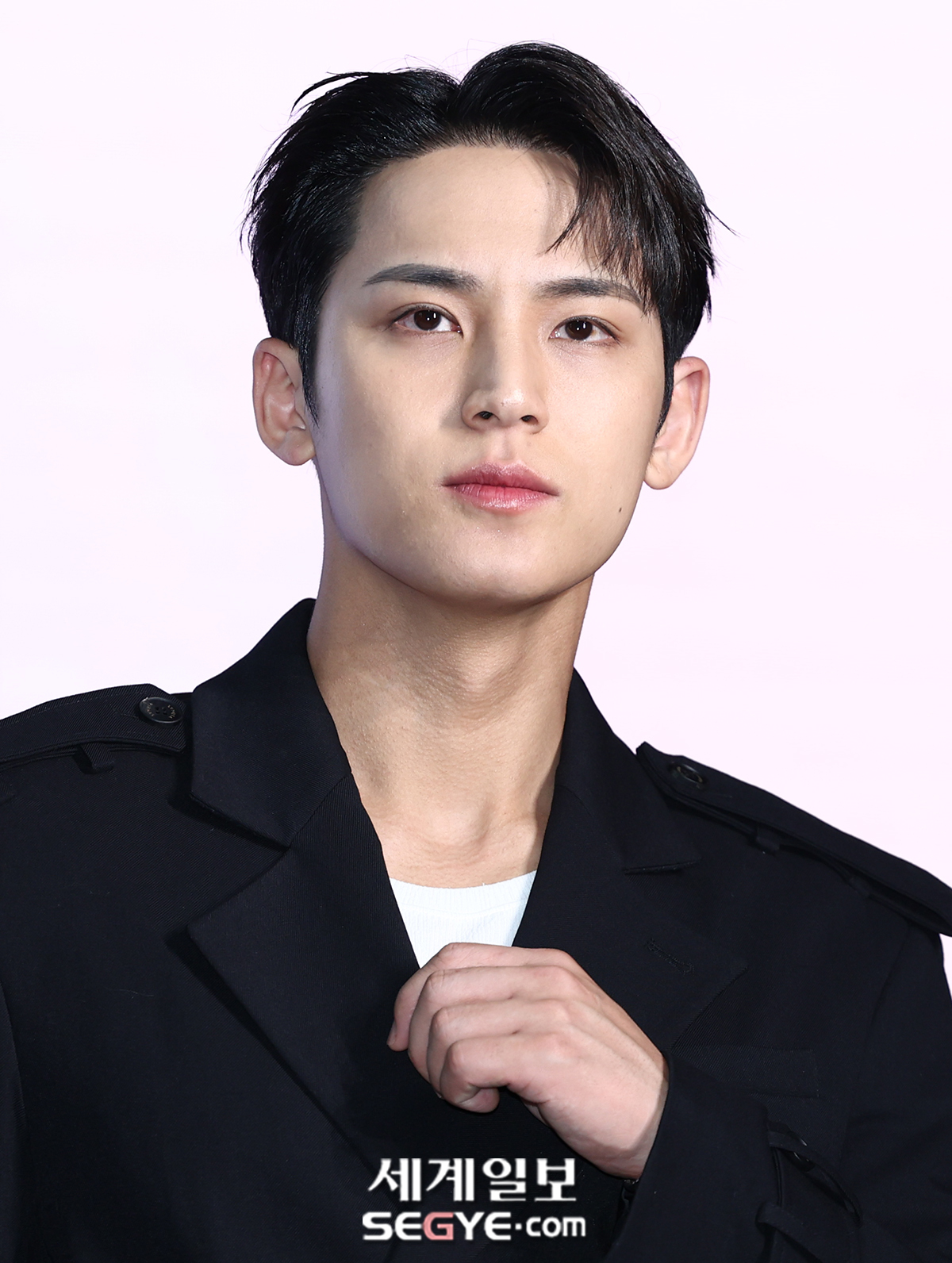 그룹 세븐틴 민규가 서울 용산구 한화손해보험 한남사옥에서 진행된 에어비앤비 CEO와 K팝 아티스트가 함께하는 포토 행사에 참석해 포즈를 취하고 있다.