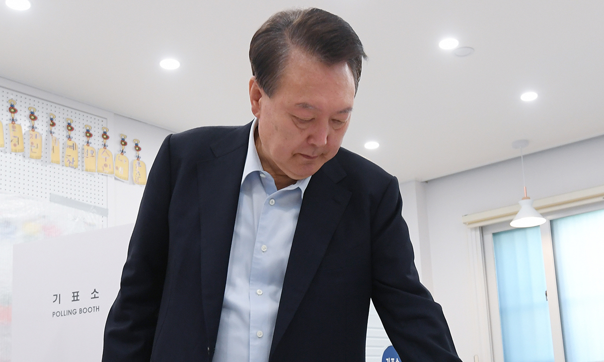윤석열 전 대통령이 지난 3일 서울 서초구 원명초등학교에 마련된 서초구 제3투표소에서 한 표를 행사하고 있다. 뉴스1