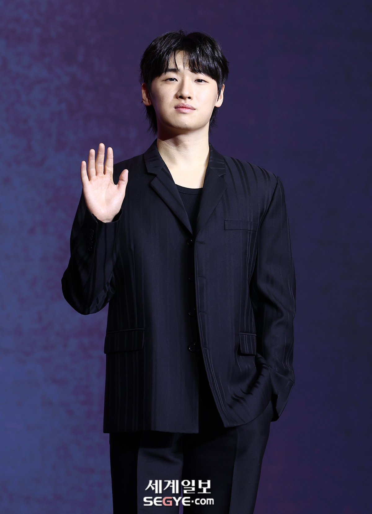 배우 이다윗이 9일 서울드래곤시티 호텔에서 열린 넷플릭스 ’오징어게임3’ 제작발표회에 참석해 포즈를 취하고 있다.