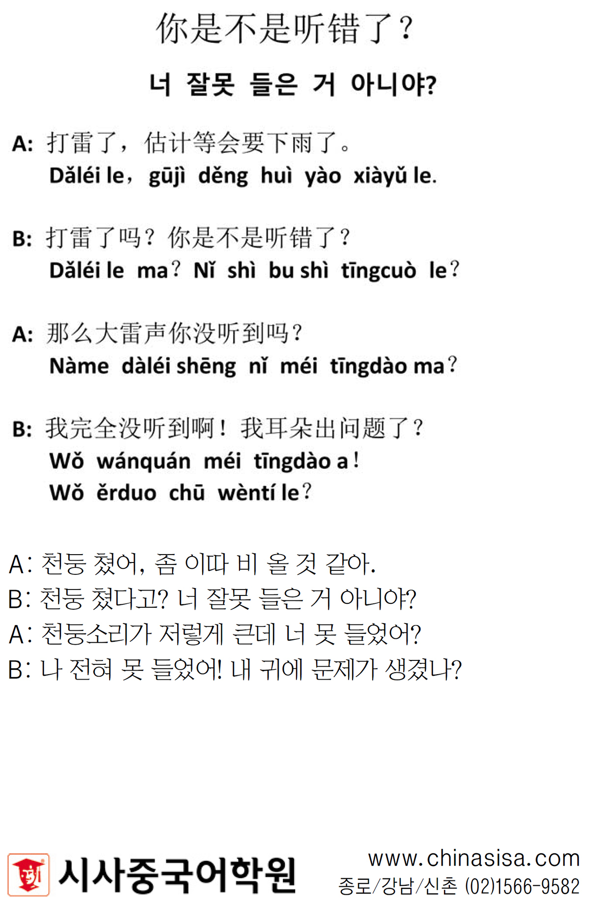 [시사중국어학원의 리얼 중국어 회화] 너 잘못 들은 거 아니야? 입력 : 2025-06-09 17:33:26 수정 : 2025-06-09 17:33:26 구글 네이버 유튜브 Copyright ⓒ 세계일보. 무단 전재 및 재배포 금지 세계일보