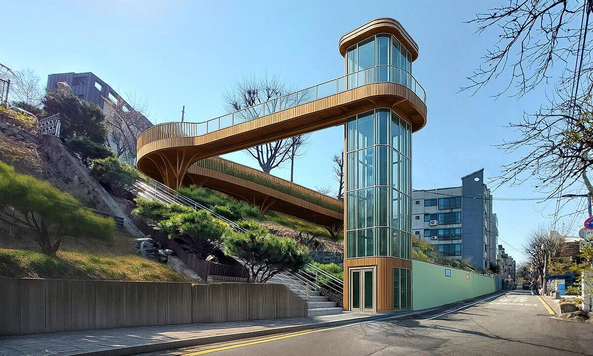 대상지는 강서구 화곡동 예다움아파트 인근, 관악구 봉천동 비안어린이공원 인근, 광진구 중곡동 무지개 계단, 종로구 숭인동 지하철 6호선 창신역 인근, 중구 신당동 남산자락숲길 접근로다. 시는 내년 착공해 2027년까지 급경사 계단을 대체할 수직 엘리베이터나 경사형 엘리베이터를 설치할 계획이다. 사업비로는 200억원이 배정됐다.