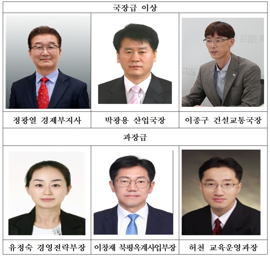 설문 결과 베스트 간부에는 국장급 이상에서 정광열 경제부지사, 박광용 산업국장, 이종구 건설교통국장이 선정됐다. 과장급에서는 유정숙 경영전략부장, 이창재 북평옥계사업부장, 허천 교육운영과장이 이름을 올렸다.