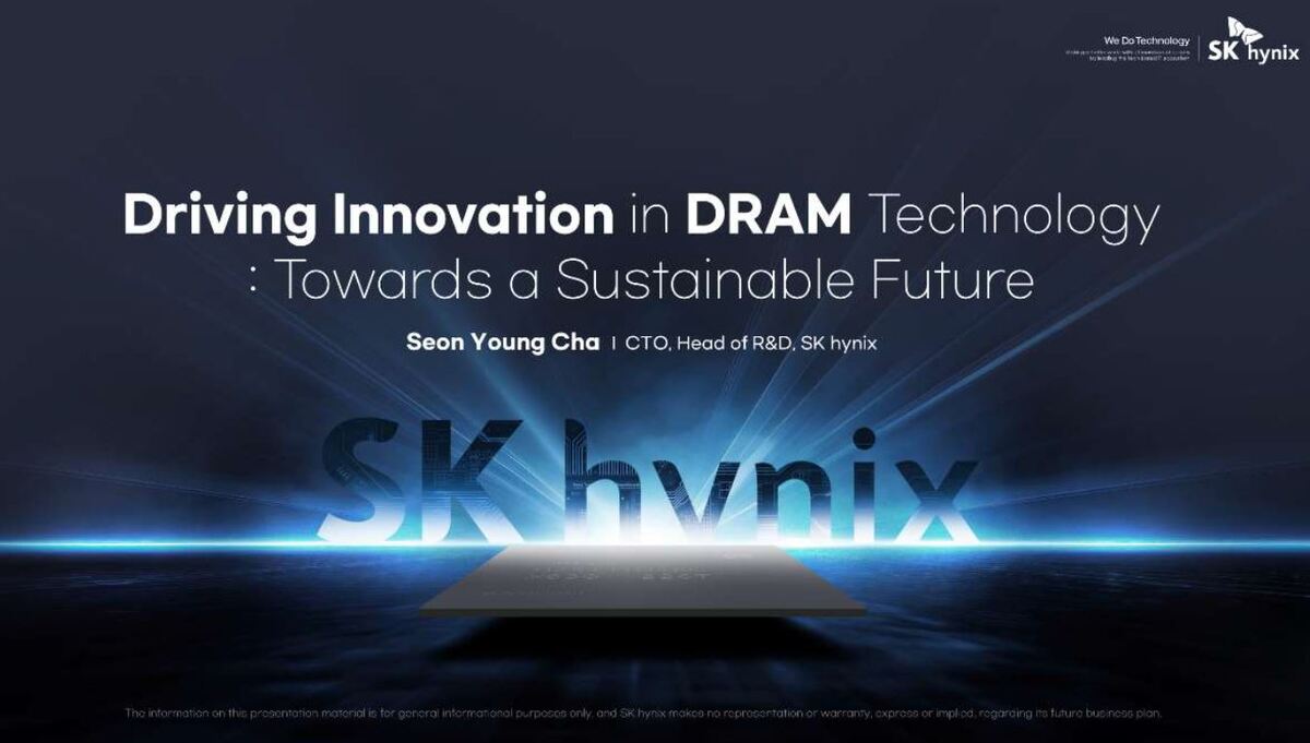 차선용 SK하이닉스 미래기술연구원장(CTO)은 행사 3일차인 이날 ‘지속가능한 미래를 위한 D램 기술의 혁신 주도’를 주제로 기조연설에 나섰다. 차 CTO는 “현재의 테크 플랫폼을 적용한 미세 공정은 점차 (D램) 성능과 용량을 개선하기 어려운 국면에 접어들고 있다”며 “10나노 이하부턴 새로운 플랫폼으로 기술적 한계를 돌파하겠다”고 예고했다.