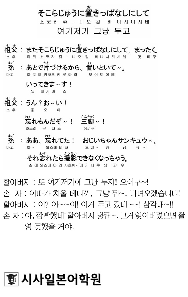 [시사일본어학원의 초단기 일본어 회화] 여기저기 그냥 두고 입력 : 2025-06-10 18:18:42 수정 : 2025-06-10 18:18:41 구글 네이버 유튜브 Copyright ⓒ 세계일보. 무단 전재 및 재배포 금지 세계일보