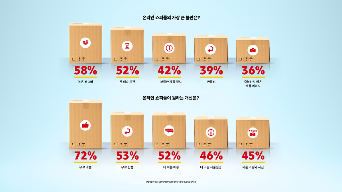 각국 온라인 소비자들은 배송과 반품이 구매 전환율을 좌우하는 핵심요인으로 생각하고 있는 것으로 나타났다.