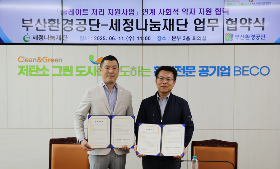 11일 세정그룹에 따르면 이날 오전 세정나눔재단이 부산환경공단과 ‘저소득층 행복가득 지붕 만들기 사업’ 지원 협약을 체결했다.