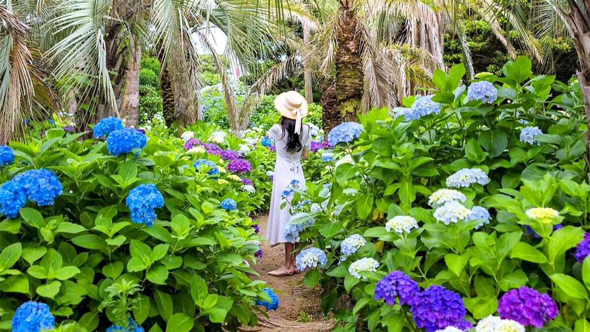 수국 시즌이 한창인 이곳에서는 다양한 색감과 크기의 수국이 정원 곳곳에 피어나 방문객들을 반긴다.