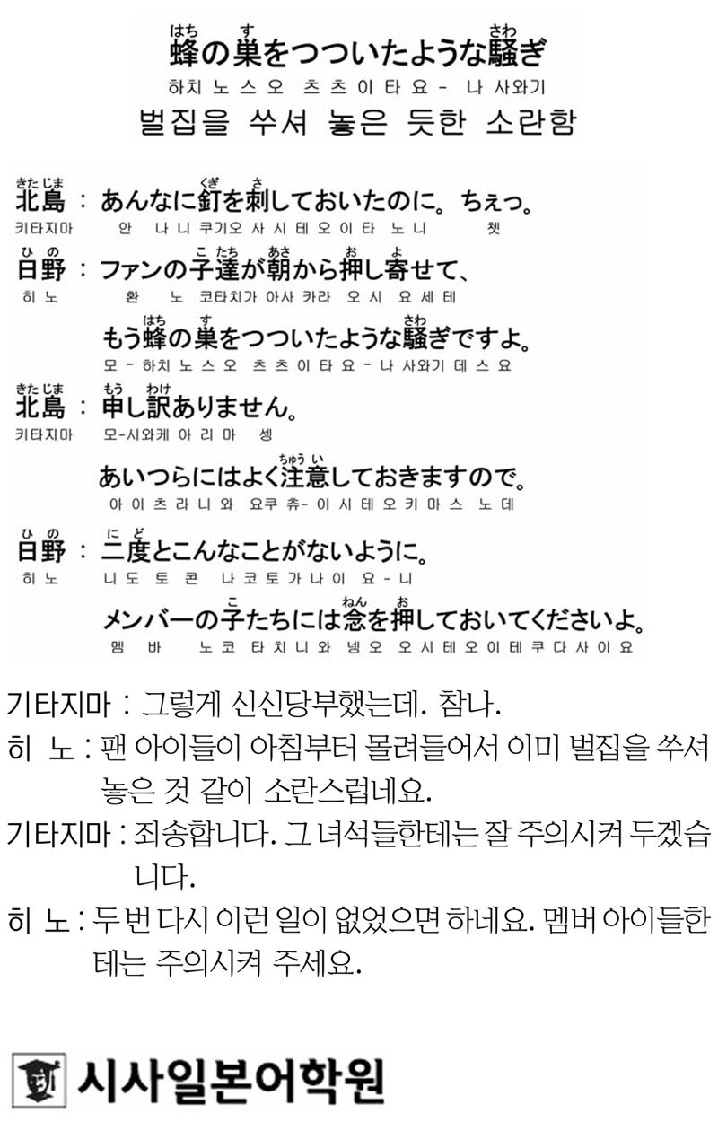 [시사일본어학원의 초단기 일본어 회화] 벌집을 쑤셔 놓은 듯한 소란함 입력 : 2025-06-11 18:30:40 수정 : 2025-06-11 18:30:39 구글 네이버 유튜브 Copyright ⓒ 세계일보. 무단 전재 및 재배포 금지 세계일보