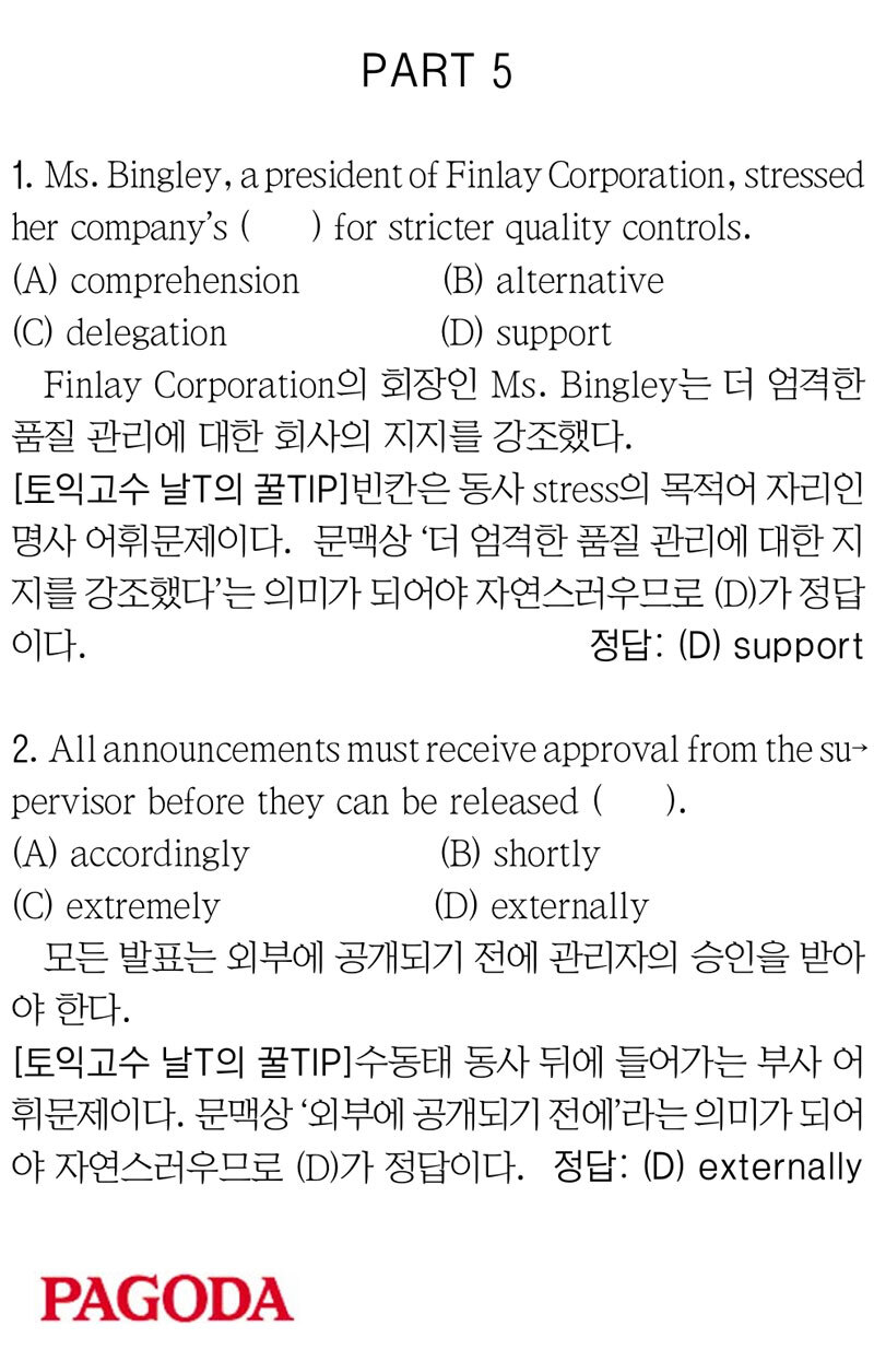 [파고다 강남 끝토익 RC김나래] PART 5