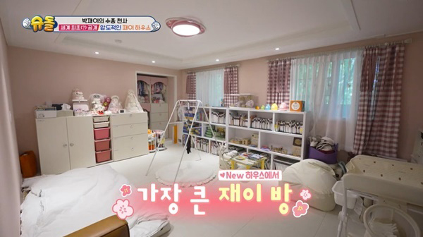 핑크빛 방에는 재이를 위한 각종 교구와 사랑스러운 소품이 가득 채워져 있었다. 박수홍은 "공부할 책들도 많지만, 장난감이나 물품도 많다"고 소개했다. MC 안영미는 "어머, 재이 부럽다"고 했다.