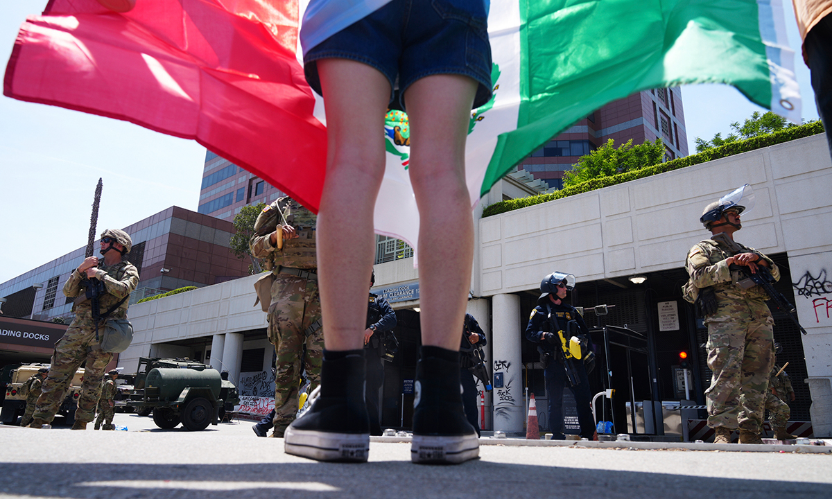 트럼프 행정부가 지난 7일부터 동원한 캘리포니아 주방위군은 그동안 시위 현장 일대의 연방 청사 주변에 배치돼 경계 활동을 펴다가 전날에는 일부 병력이 ICE의 불법이민자 단속 작전을 돕는 데 투입됐다.