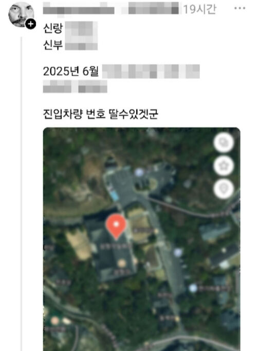 게시글에는 예식 일정과 장소로 추정되는 지도 사진 등 구체적인 정보가 포함돼 있었다. 작성자는 ‘일거에 척결’이라고 이름 붙인 카테고리에 해당 글을 올린 것으로 알려졌다.
