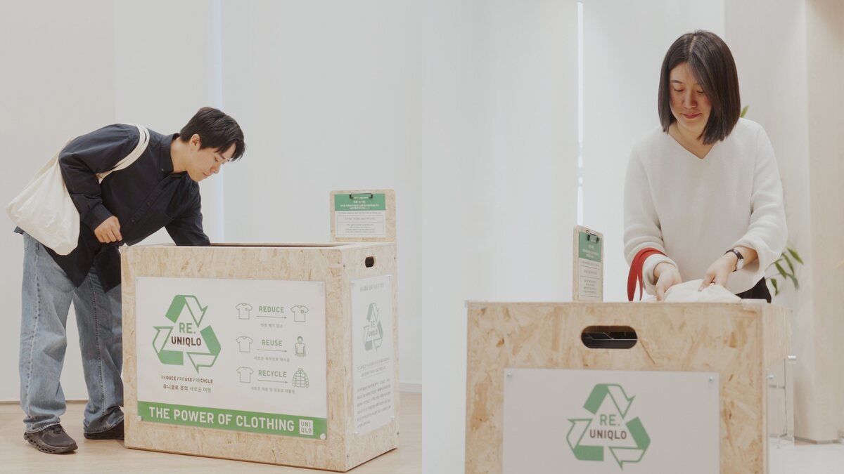 국내에서는 전국 135개 매장에 설치된 의류 수거함을 통해 고객들에게 헌 옷을 기부받고 있으며, 유니클로 롯데월드몰점 및 동성로점에서는 ‘리유니클로 스튜디오’를 운영하며 수선 및 자수 서비스 등을 통해 옷을 오래 입을 수 있도록 장려하고 있다.