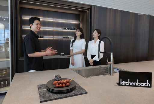12일 서울 강남구 ‘한샘 플래그십 논현’에서 모델들이 한샘의 프리미엄 키친 브랜드 ‘키친바흐’ 제품을 소개하고 있다. 이번 신제품은 와이드 주방과 조명장식장, 펜트리장, 포켓폴딩 도어 등을 갖췄다. 또 최근 고급 주택에서 높아진 천장을 고려해 최대 2.7m까지 맞춤 시공이 가능하며 소비자 맞춤형 설계를 위한 전문가 상담, 전문 시공, 사후관리까지 전담 서비스를 제공한다.